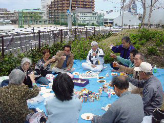 私は、午後の予定もあり、1時間ほどでしか出席できませんでしたが、桜の木の下で、手作りのお料理をいただき、楽しいひとときを過ごさせていただきました。