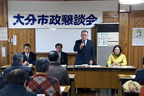 1月29日土曜日、午前10時、大分市日吉町のグリーンカルチャーセンターで市政懇談会が開催されました。この懇談会は日本共産党大分市議団が主催し、12月議会の報告と、3月議会に向けての市民のみなさんの意見や要求をお聞きするためのものです。